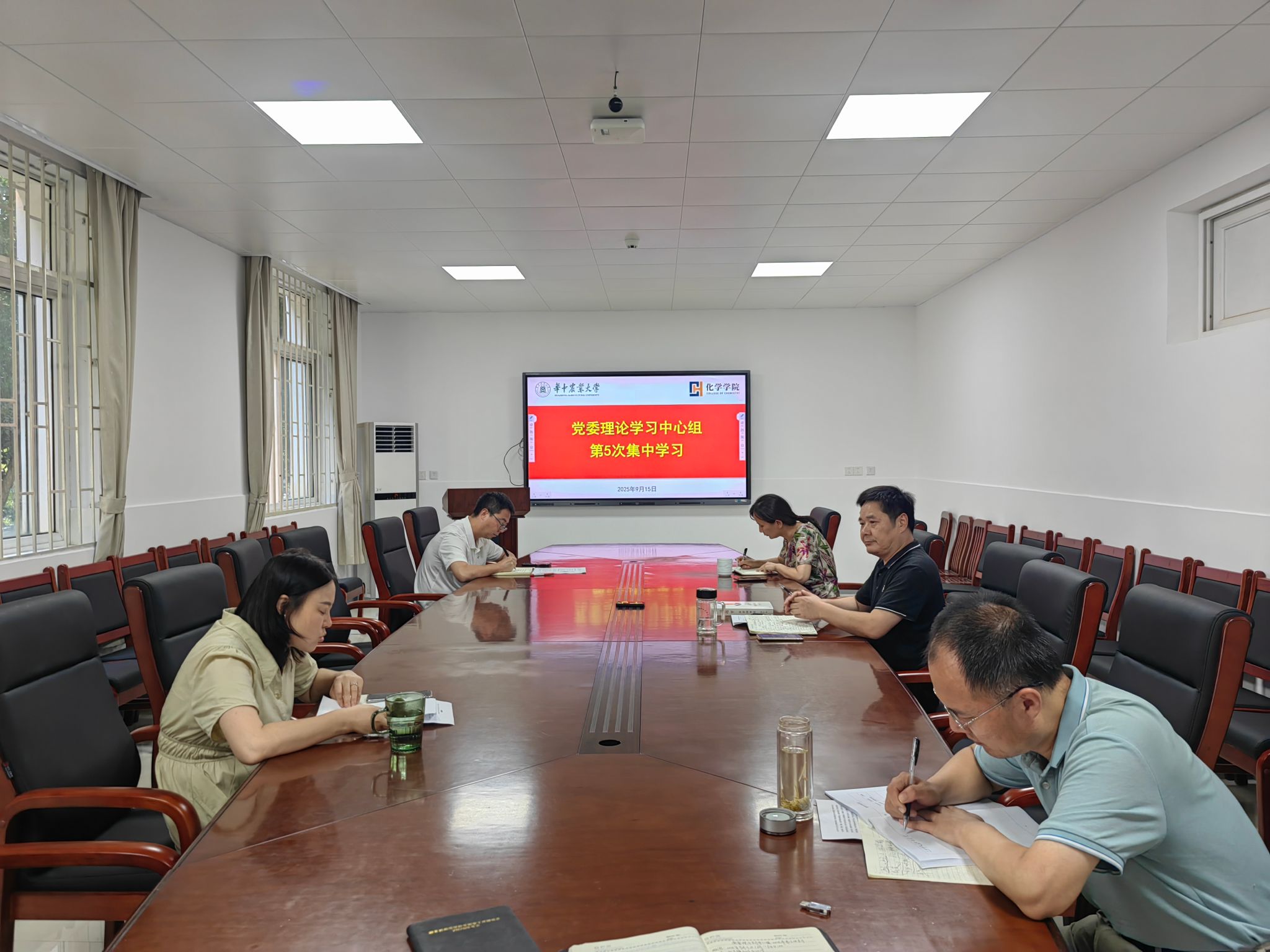 (通讯员:皓月)9月15日下午,学院党委理论学习中心组在化学楼 A106 会议室开展集中学习研讨。党委理论学习中心组成员围绕习近平总书记系列重要讲话精神交流学习体会、凝聚思想共识。学习活动由学院党委书记涂俊才主持。