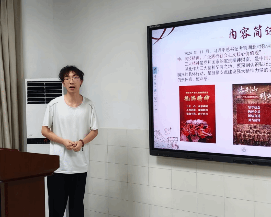 随后,沙旭楠同志领学大别山精神、抗洪精神、抗疫精神的丰富内涵和精神实质。他介绍了大别山精神的历史渊源,阐释了坚守信念、胸怀全局、团结奋进、勇当前锋的革命精神。接着,沙旭楠同志又带领大家学习了抗洪精神和抗疫精神,回顾了1998年抗洪抢险和2020年抗击新冠疫情中,中国人民展现出的万众一心、众志成城、舍生忘死、尊重科学、命运与共的伟大精神。