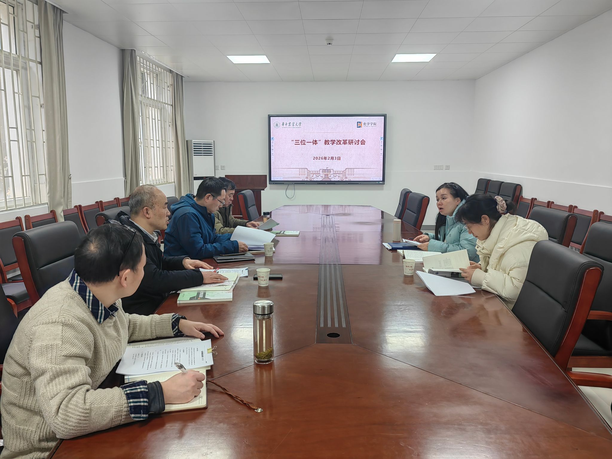 随后,各课程团队教师围绕《高等化学》《高等化学实验》等核心课程,详细汇报了课程建设进展与教学实践情况,并就当前教学中存在的挑战与改进方向展开深入交流。大家一致认为,应进一步强化课程的研究性、前沿性与交叉性,注重教学中融入科研思维训练,激发学生自主探究与解决复杂科学问题的能力。