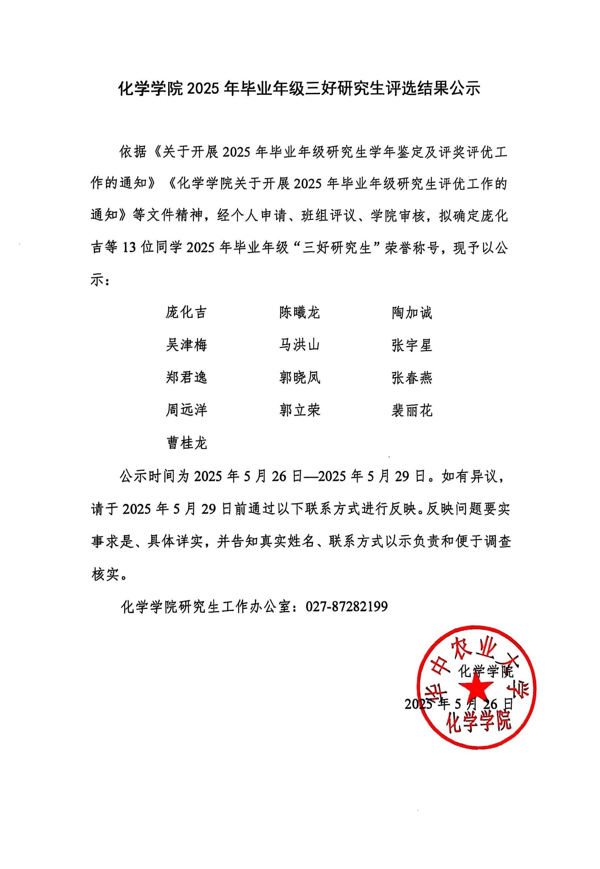 地址:湖北省武汉市洪山区狮子山1号华中农业大学化学楼