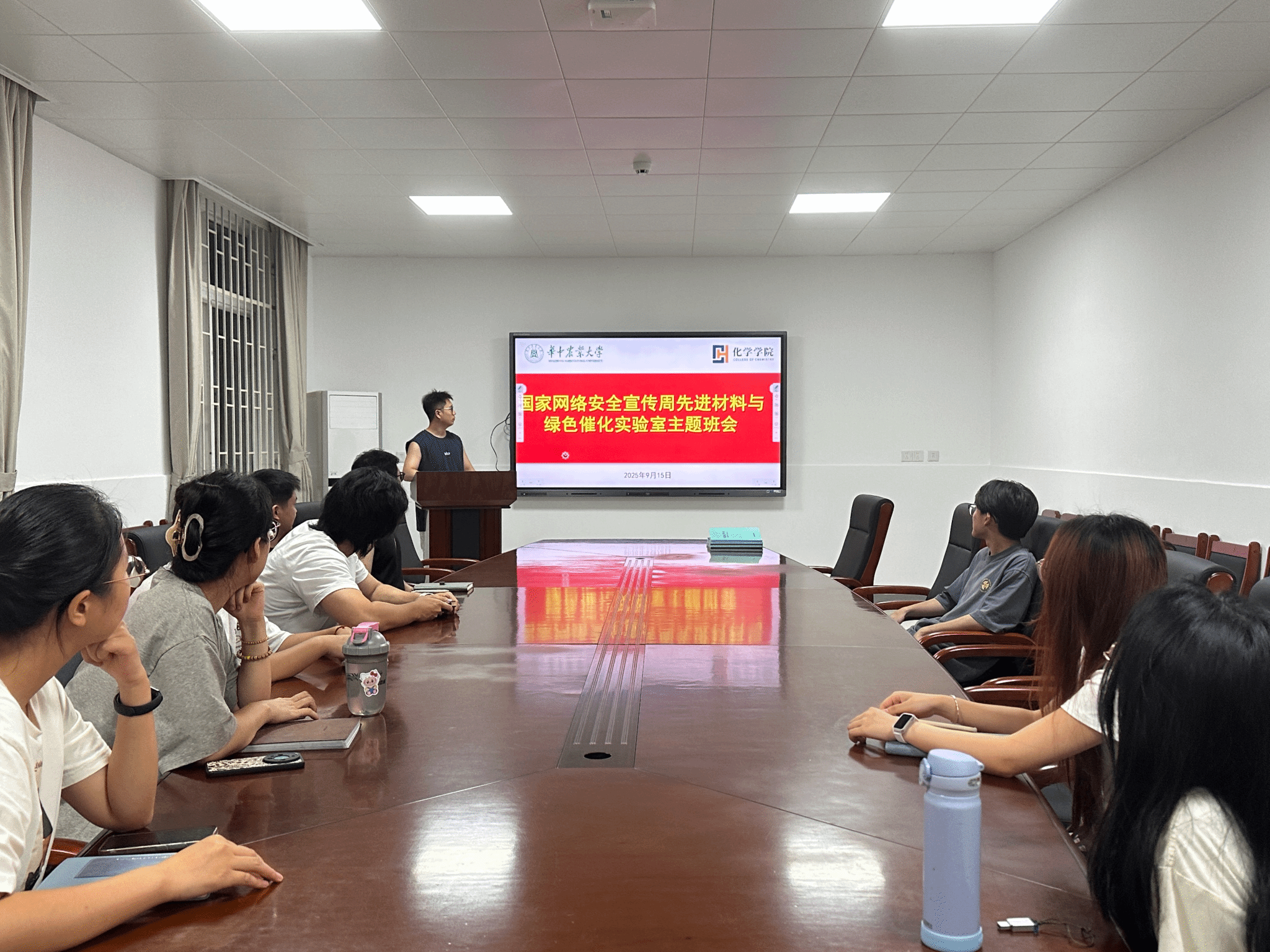 (通讯员:冯红科)为积极响应华中农业大学关于组织开展 2025 年国家网络安全宣传周活动的通知,切实筑牢学生网络安全思想防线,提升网络安全防护能力,化学学院先进材料与催化实验室于 2025 年 9 月 15 日在化学楼 A106 召开 “树立正确的网络安全观” 主题班会,实验室全体研究生参与此次活动。
