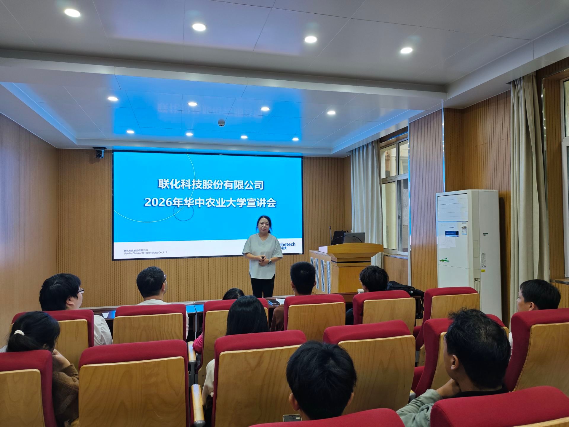 近日,联化科技股份有限公司(以下简称:联化科技)2026届校园招聘宣讲会在化学学院A102报告厅顺利举行。联化科技人力资源总监王琼丽、研发部经理江朋分别从人才发展与技术创新维度展开分享,为同学们搭建起行业面对面交流的桥梁,并在现场进行招聘面试,会议由2022级辅导员程思源主持。
