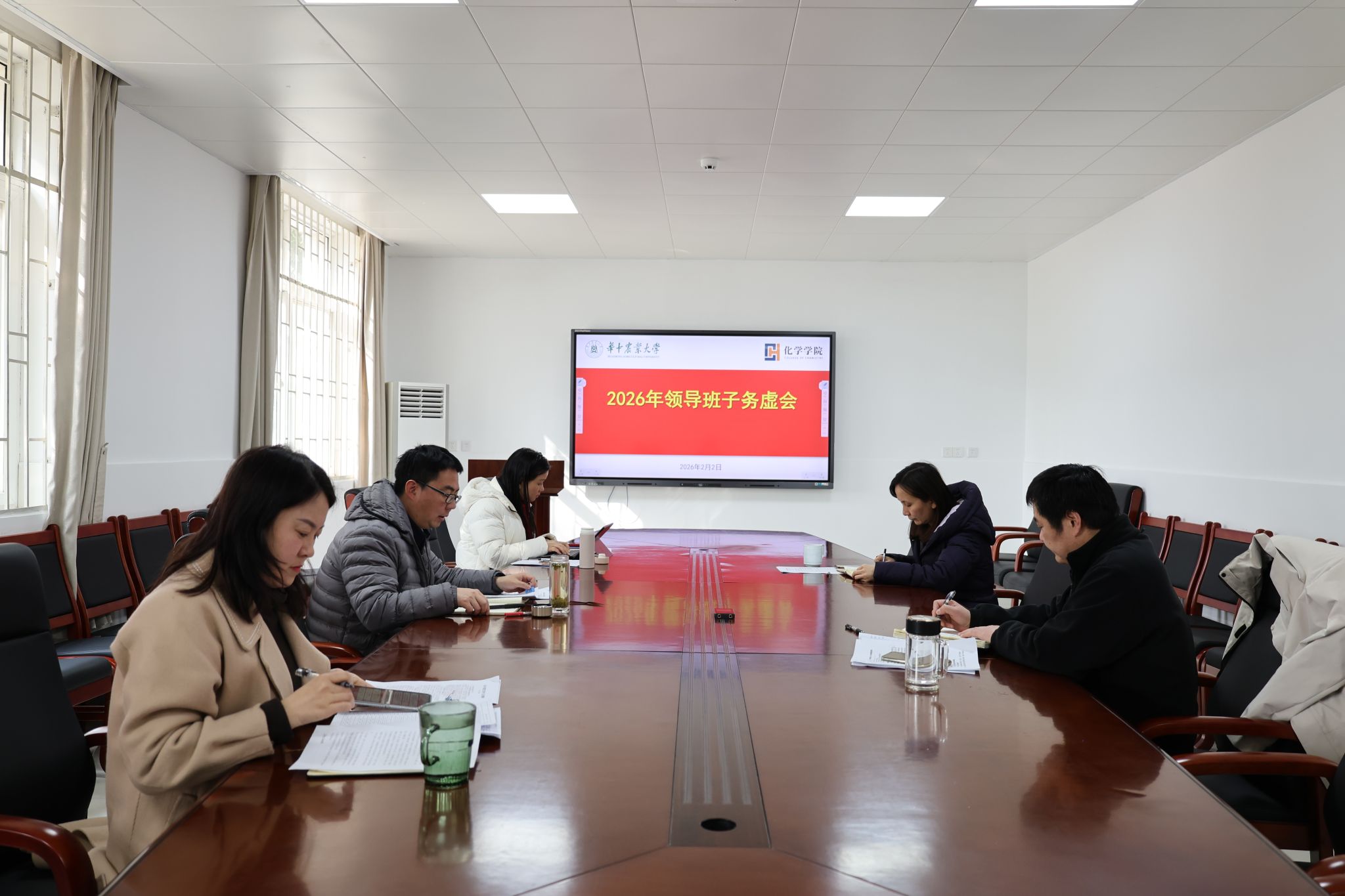 (通讯员:皓月)2月2日,学院在化学楼A10会议室召开2026年度工作务虚会,以“对标对表、克难攻坚,奋力推进学院事业高质量发展”为主题,紧扣贯彻落实学校第十一次党代会精神,聚焦学院转型发展核心目标,对标目标管理与绩效考核的关键指标,研判学院发展形势,全面谋划2026年重点工作。学院党委书记涂俊才主持会议。