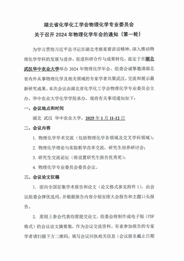 湖北省化学化工学会物理化学专业委员会关于召开2024年物理化学年会的通知(第一轮).pdf