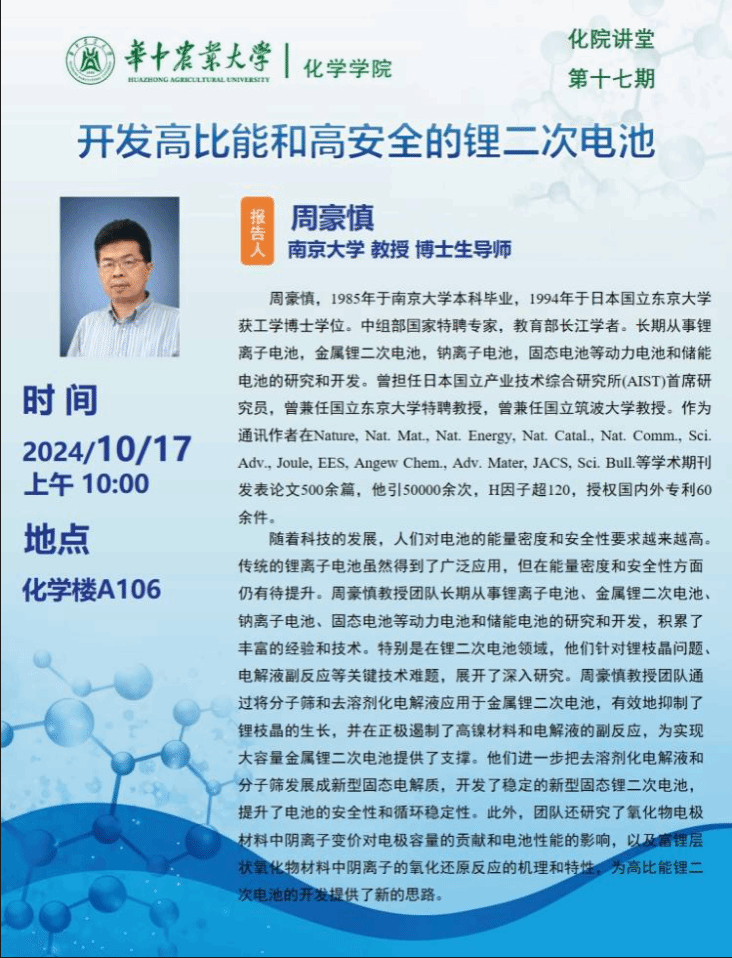 地址:湖北省武汉市洪山区狮子山1号华中农业大学化学楼
