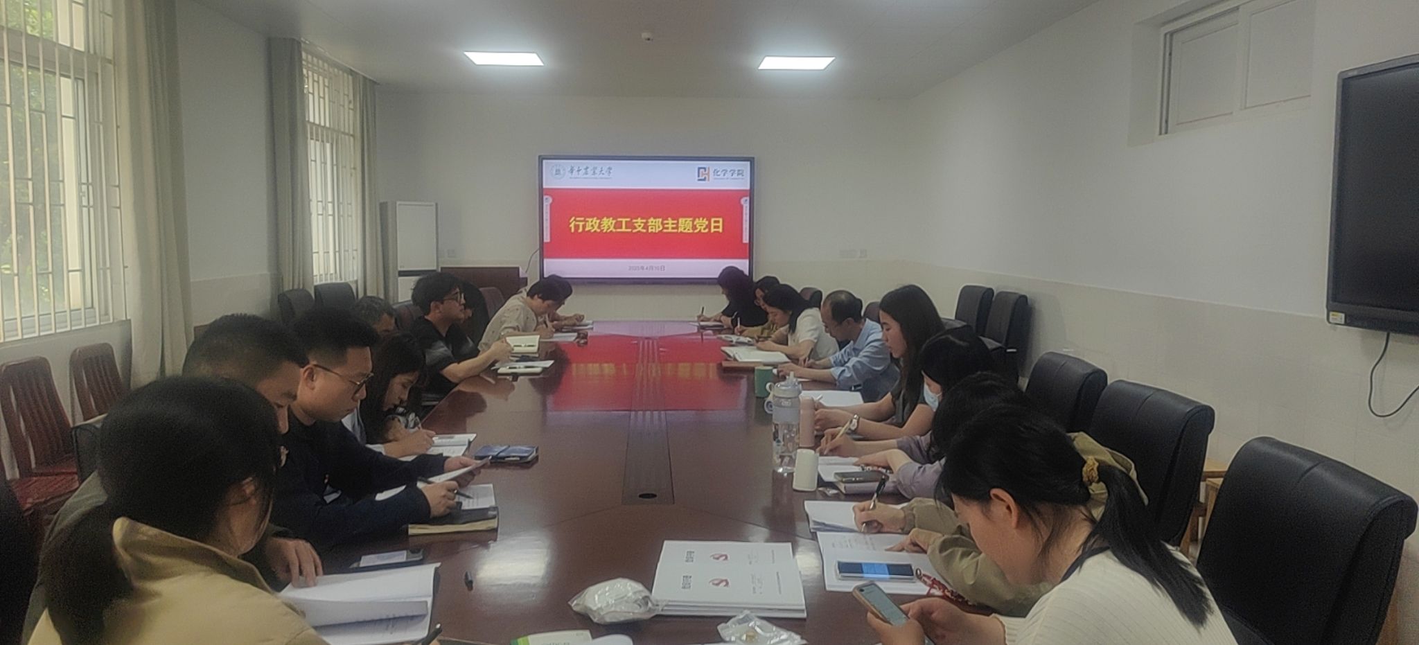 (通讯员:汪献芳)4 月 10 日下午,行政教工党支部于化学楼 A106 会议室开展了主题党日活动。此次活动聚焦专题学习习近平总书记在贵州、云南考察时关于贯彻中央八项规定精神的重要讲话、学习总体国家安全观等内容,并开展了党员不能信仰宗教专题教育活动。活动由支部书记周静舫主持,全体支部成员积极参与。