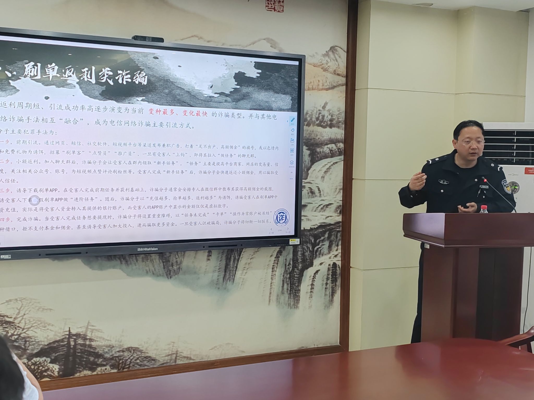 刷单作为电信网络诈骗的主要引流方式,呈现出 “变种最多、变化最快” 的特性。其犯罪手法通常是:前期通过多种渠道进行引流,以小额返利的方式获取受害人的信任,随后诱导受害人下载刷单 APP,最终实施诈骗。郭警官提醒同学们,切不可被眼前的利益蒙蔽双眼。此类诈骗正是利用了同学们贪图小便宜的心理,通过逐步给予小额金钱的引诱,让受害人不知不觉地陷入骗子精心设下的圈套。